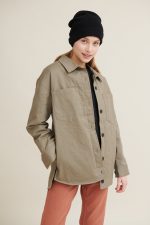 Mia Shirt Jacket is made of 97% organic cotton and 3% spandex. This canvas shirt jacket has dropped shoulders, classic patch pockets and a button closure at front.